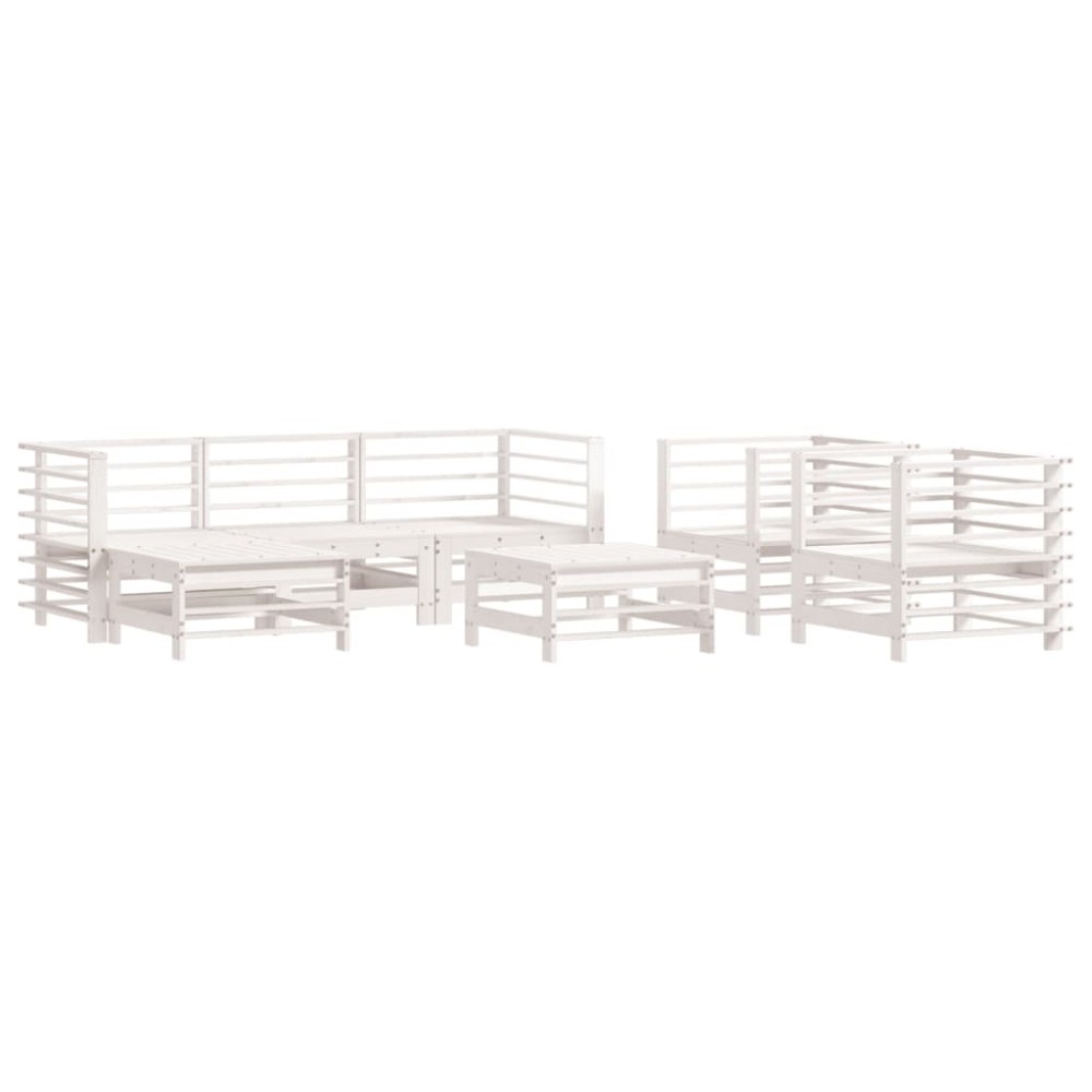 Set mobilier de gradina, 7 piese, alb, lemn masiv de pin