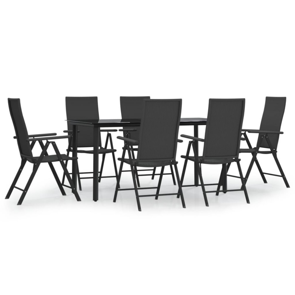 Set mobilier de gradina, 7 piese, negru, poliratan