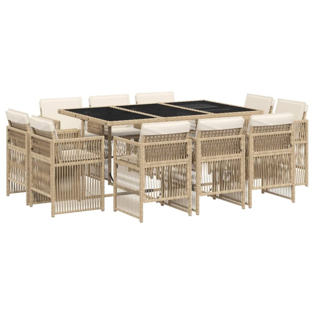 Set mobilier de gradina cu perne, 11 piese, bej, poliratan