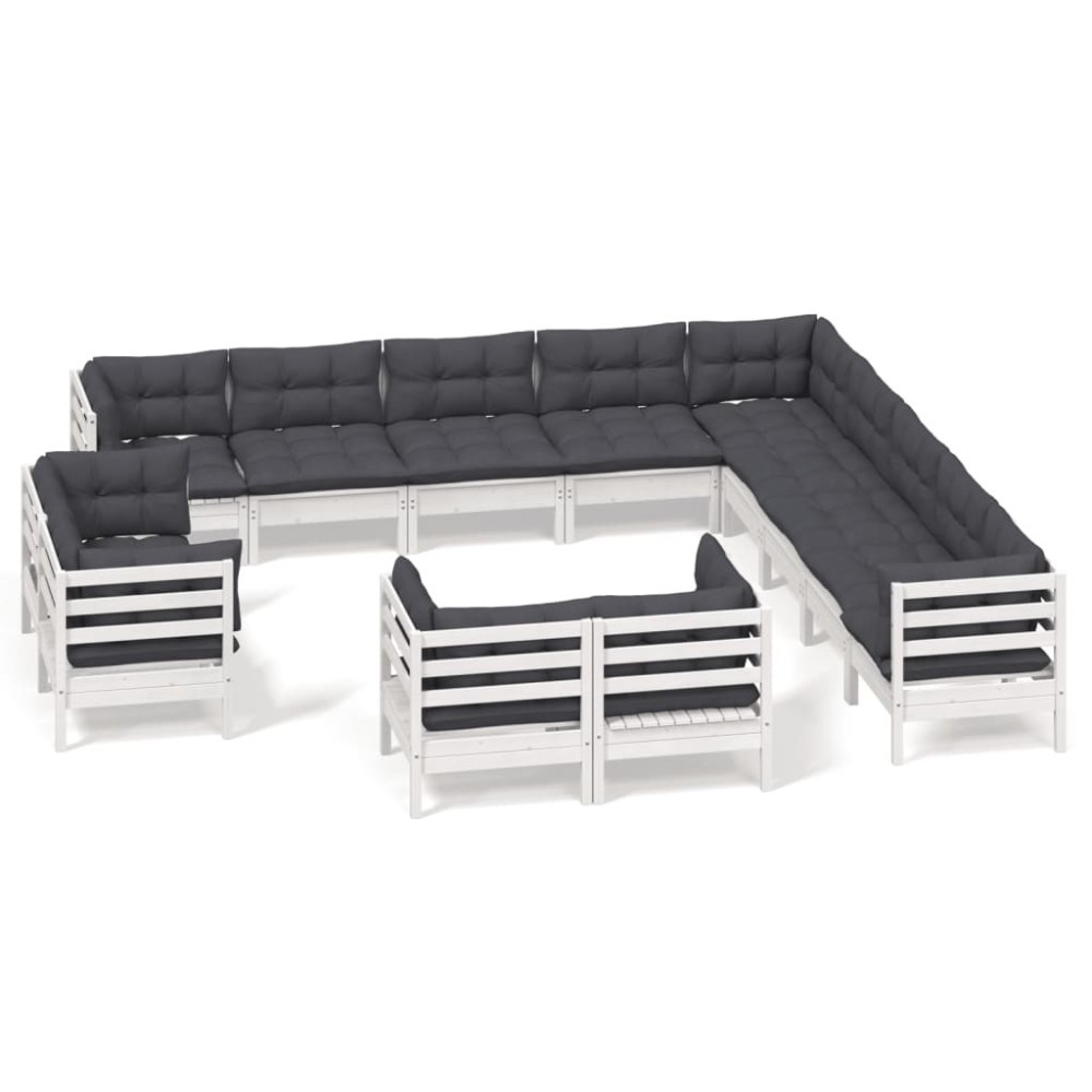 Set mobilier de gradina cu perne, 13 piese alb, lemn masiv pin
