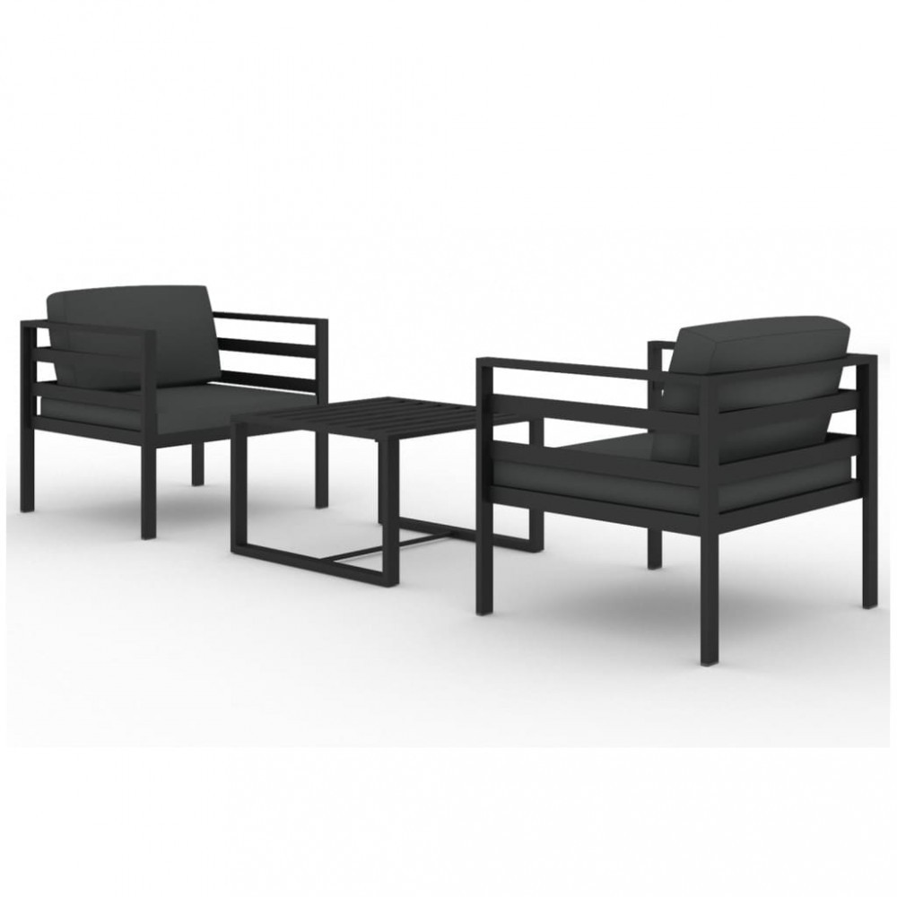 Set mobilier de gradina cu perne, 3 piese, antracit, aluminiu