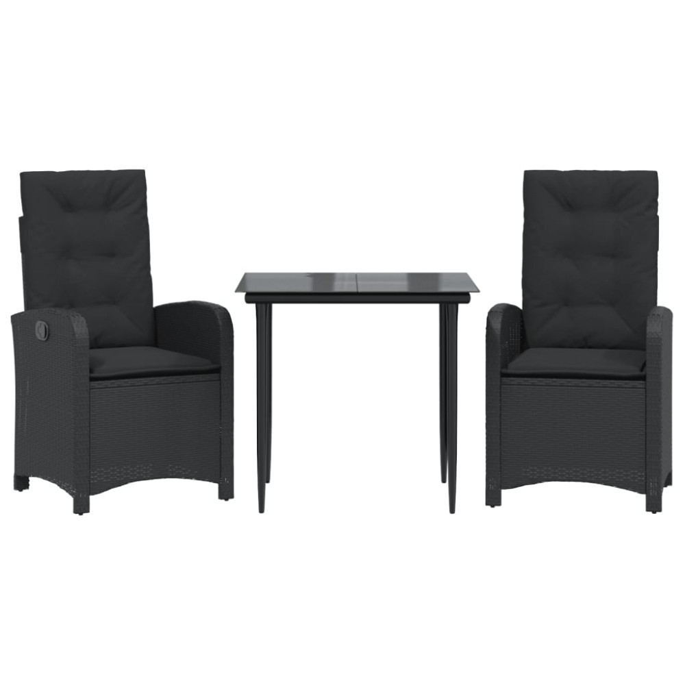 Set mobilier de gradina cu perne, 3 piese, negru, poliratan