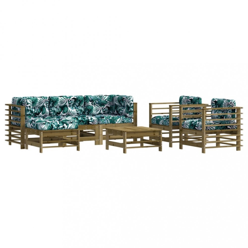 Set mobilier de gradina cu perne, 7 piese, lemn de pin tratat