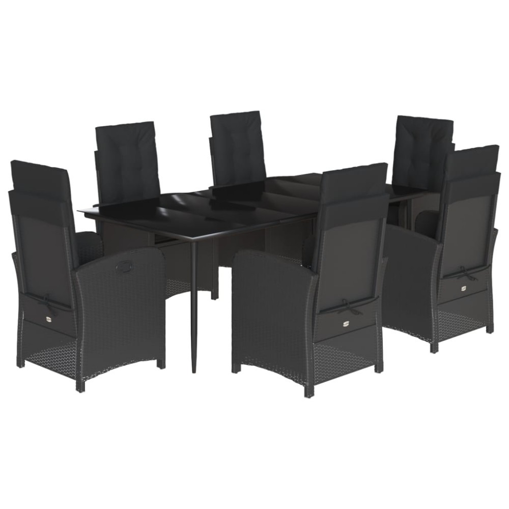 Set mobilier de gradina cu perne, 7 piese, negru, poliratan