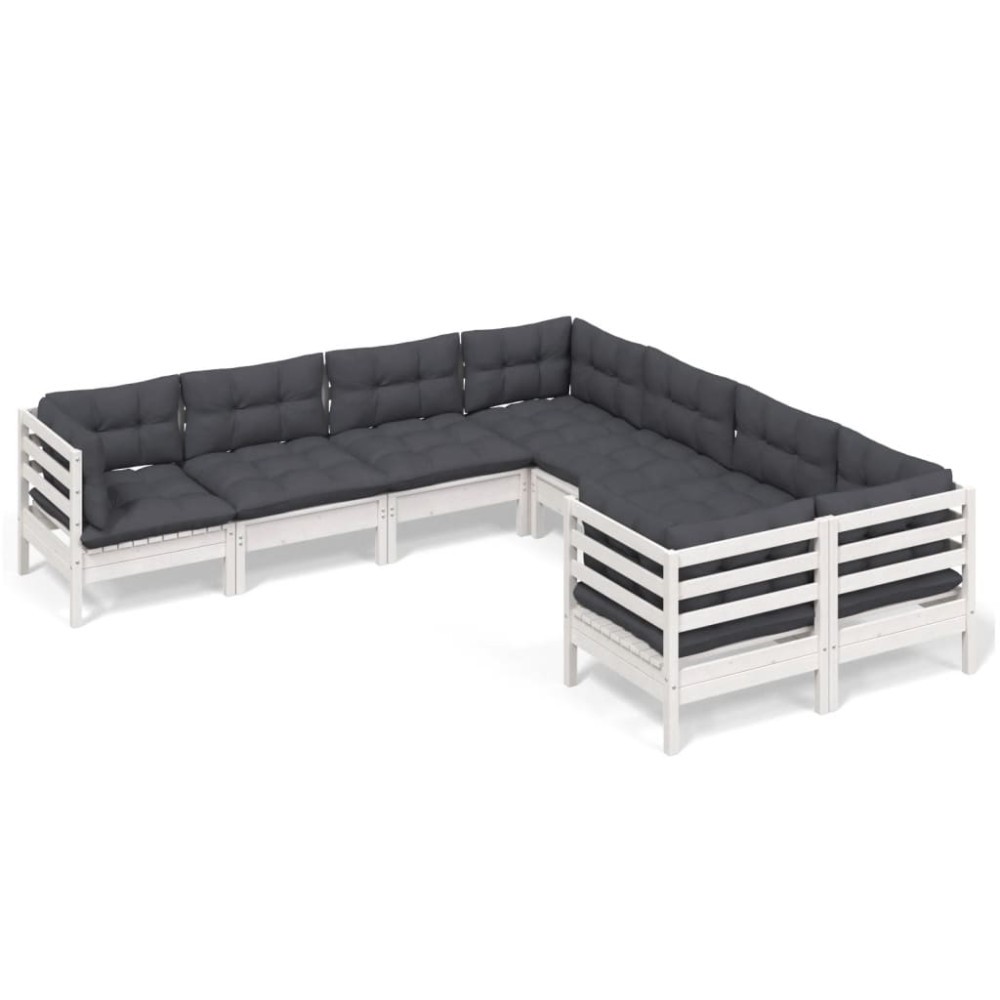 Set mobilier de gradina cu perne, 8 piese, alb, lemn masiv pin