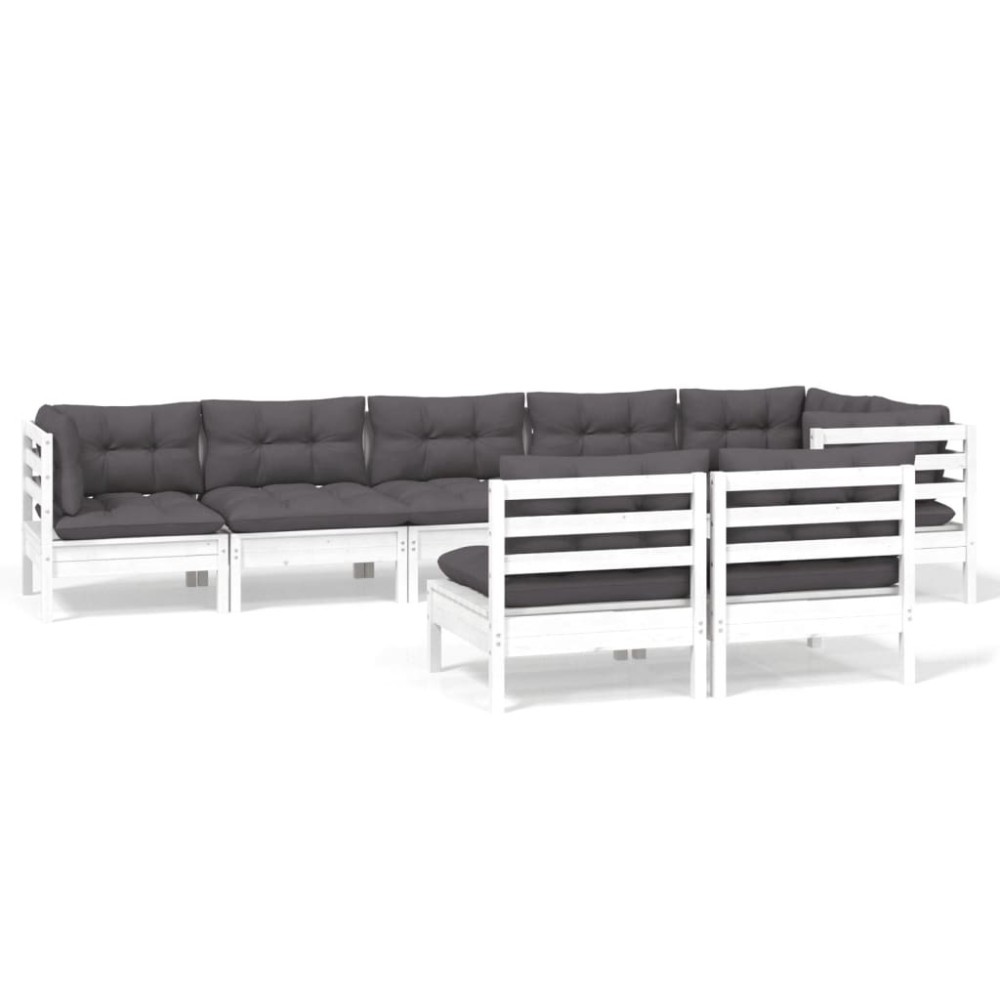Set mobilier de gradina cu perne, 8 piese, alb, lemn masiv pin