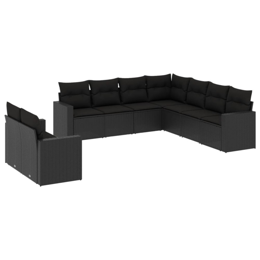 Set mobilier de gradina cu perne, 9 piese, negru, poliratan