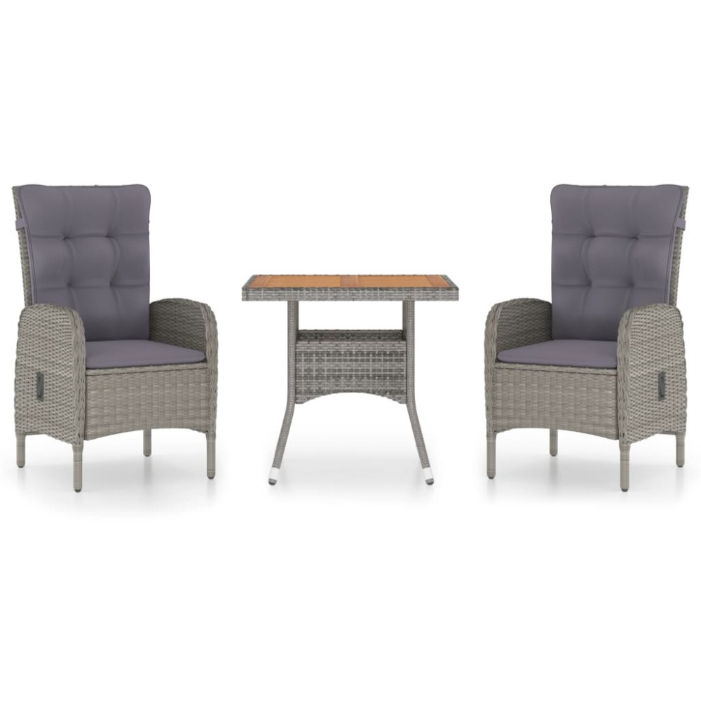 Set mobilier gradina, 3 piese, gri, poliratan si lemn acacia