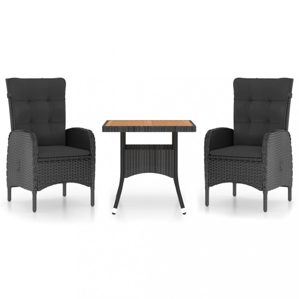 Set mobilier gradina, 3 piese, negru, poliratan si lemn acacia
