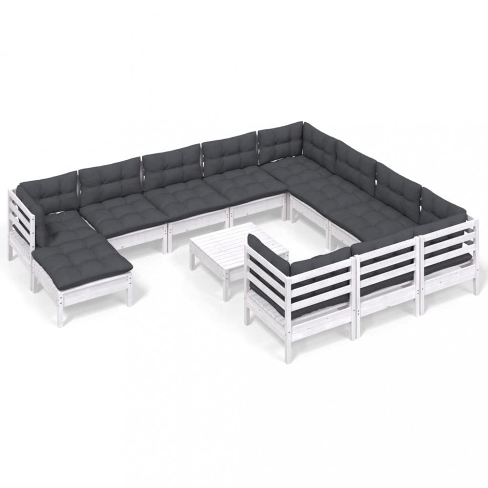 Set mobilier gradina cu perne, 12 piese, alb, lemn de pin