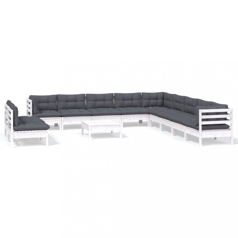 Set mobilier gradina cu perne, 12 piese, alb, lemn masiv pin