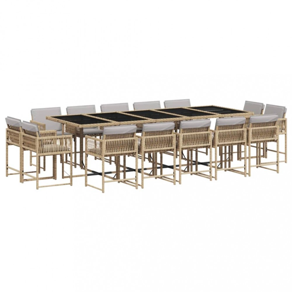 Set mobilier gradina cu perne, 15 piese, bej combinat poliratan