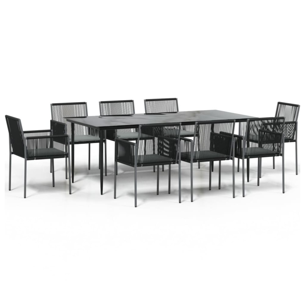Set mobilier gradina cu perne, 9 piese, negru, poliratan & otel