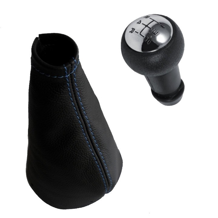 Set nuca cu manson schimbator viteze MARTI-NIK 15 compatibil cu CITROEN C4 2004-2009, 5 viteze, piele naturala, fara un cadru, negru cu cusatura albas
