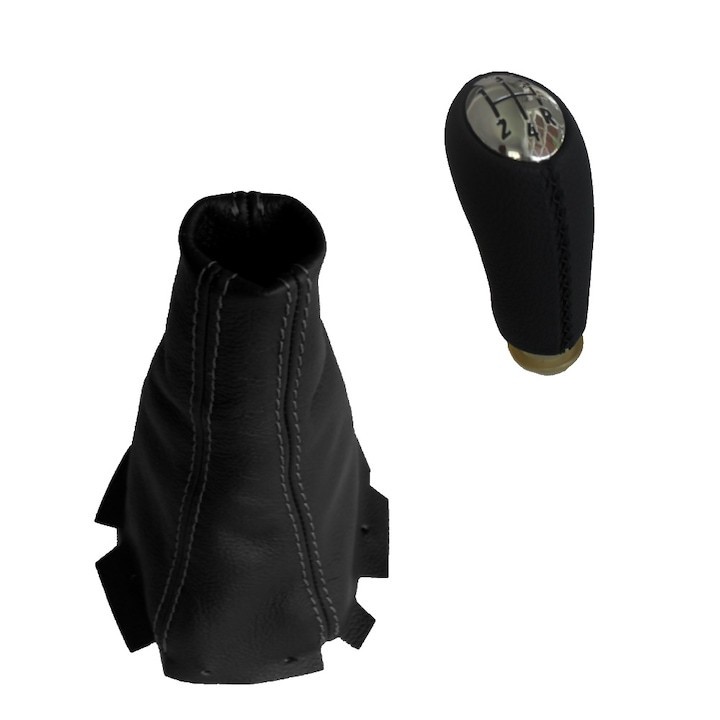 Set nuca cu manson schimbator viteze MARTI-NIK 15 compatibil cu DACIA Dokker 2012-2018, 5 viteze, piele naturala, fara un cadru, negru cu cusatura nea