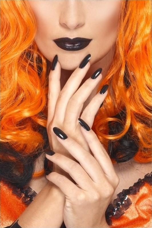 Set compus din oja si ruj, de culoare neagra, pentru machiajul de vrajitoare.