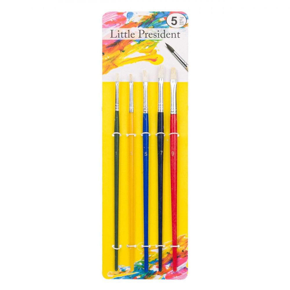 Set Pensule Pictură, Little President, Vârf Plat, Multicolor, 5 Bucăți