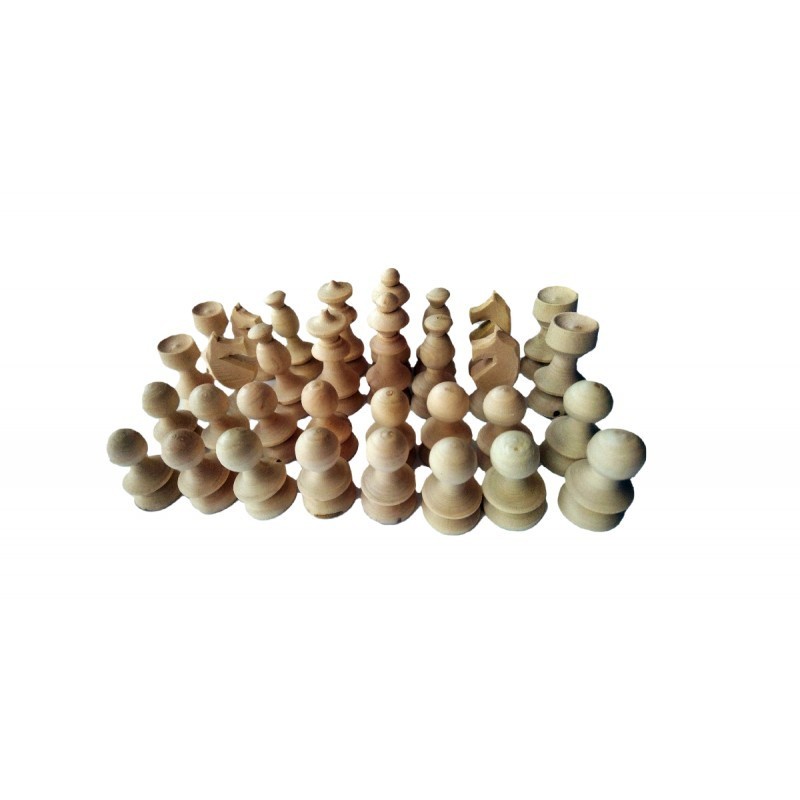 Toate sunt lucrate manual din lemn de alun. Nu sunt vopsite sau lăcuite. Sunt doar lemnul natural făcut cu strung manual și uscat. Setul conține: 1 set complet de 32 de piese de șah obișnuite. Diametrul bazei este de 2.4 cm, iar regele are 5.7 cm înălțime.