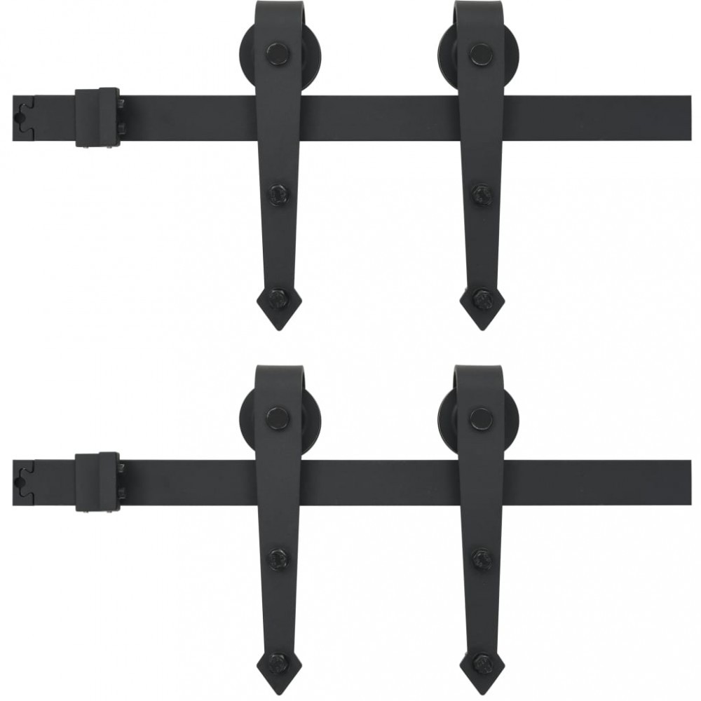 Set piese pentru usi glisante, negru, 2 x 183 cm, otel