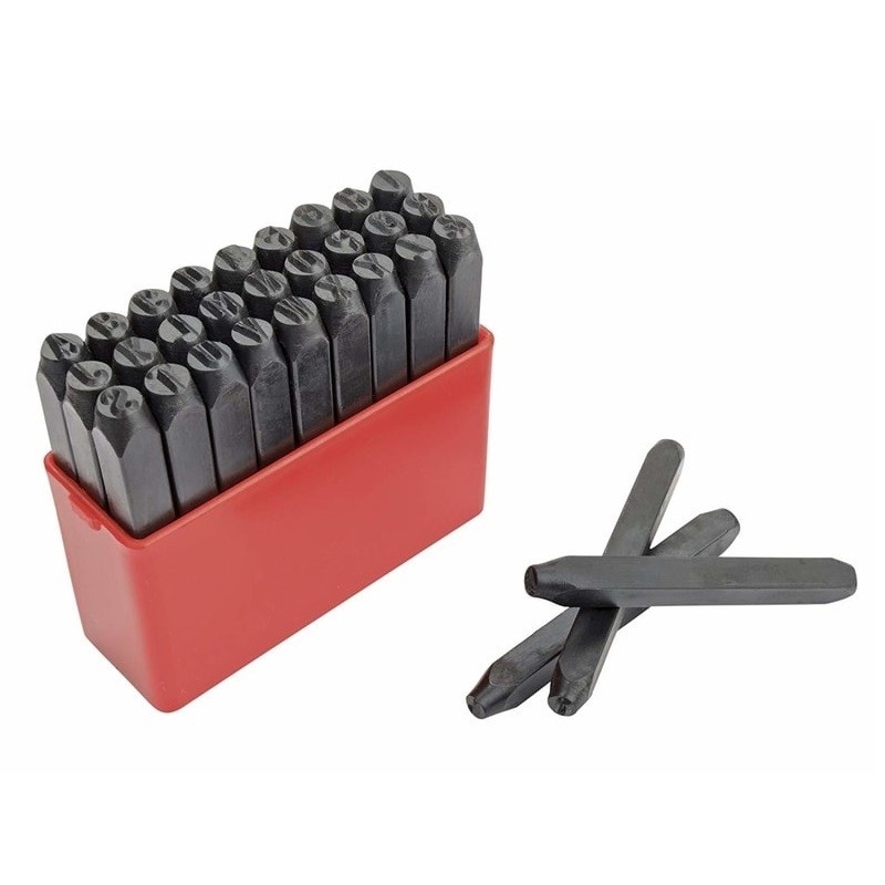 - Poansonul de marcat litere DIN este fiabil in timp. Acest set are dimensiuni mic. Acest lucru faciliteaza transportul in diferite zone de lucru. Acest set de poansonare este ideal pentru orice mester deoarece contine toate literele de la A-ZX
