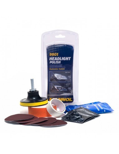Kitul profesional de restaurare faruri Mannol este solutia ideala pentru reconditionarea farurilor auto din plastic, matuite, zgariate, ingalbenite sau oxidate, fara a fi nevoie de demontare. Asigura lustruire si protectie durabila UV, redand claritatea si eficienta optica a farurilor si imbunatatind vizibilitatea in trafic.