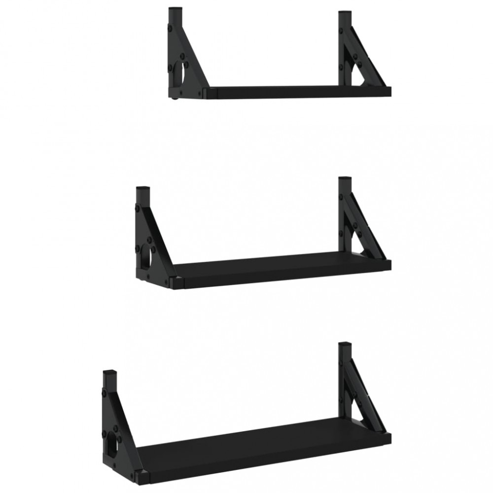 Set rafturi de perete, 3 buc., negru, lemn prelucrat