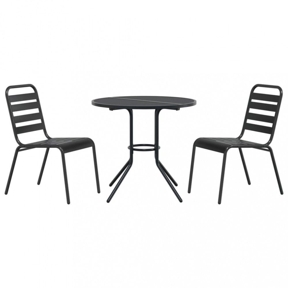 Set scaune de gradina stivuibile, 3 buc., antracit, otel vopsit