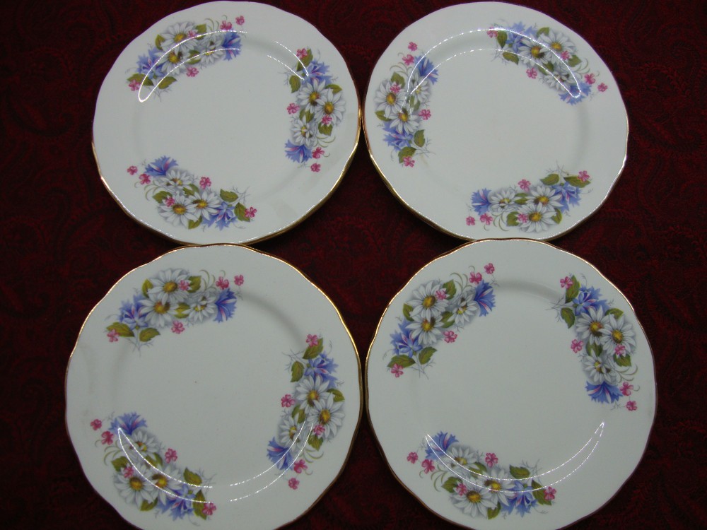 FRUMOS SET / SERVICIU 4 FARFURII MIC DEJUN DIN PORTELAN ENGLEZESC ROYAL KENT, FARFURIILE AU DIAMETRUL DE 16 CM.