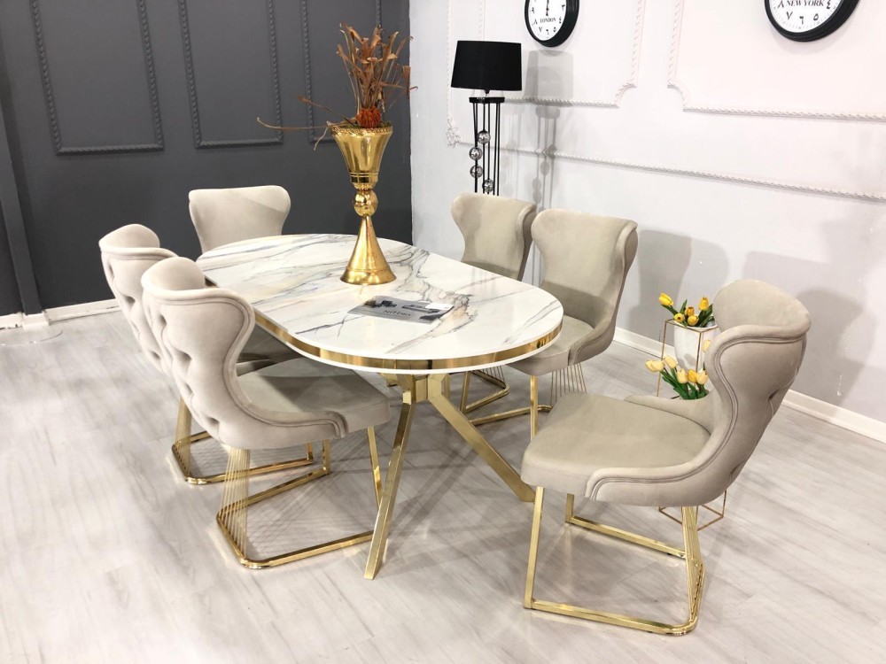 🚚 Transport gratuit în toată țara! 📞 Comandă acum la: 0758 995 511 🍽️ Set masă și 6 scaune – eleganță și rafinament pentru casa ta! Adaugă un plus de stil și confort în zona ta de dining cu acest set modern, format din masă cu blat MDF și 6 scaune tapițate în catifea moale,...