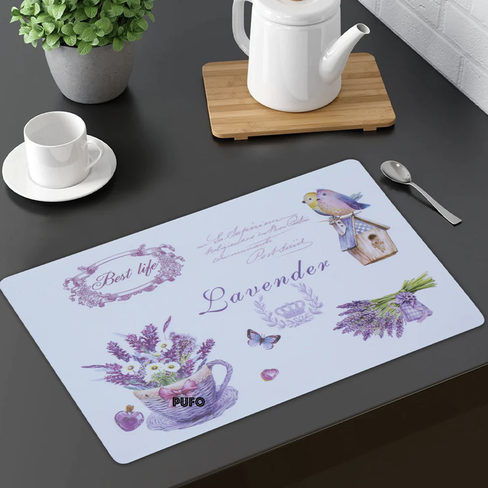 Set suport pahar si farfurie pentru servirea mesei, model Pufo Best Lavanda, 6 bucati