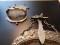 Un deosebit set pentru seara alcatuit dintr-un mic portmoneu cu doua compartimente , argint cu titrul 800 , Argintar PT neidentificat,post 1838 si un sac cu prindere la centura din argint cu titrul 950 , argintar Charles Murat ,1897 , Paris , 1 Rue des Grandes Chantiers si ulterior 62 Rue des Archives , inregistrat cu no. de garantie C14 si no. de prefectura 11448 . Greutatea pormoneului 27,68 g iar a sacului app 250 g . Setul este in stare perfecta , fixarea pentru centura avand balama .