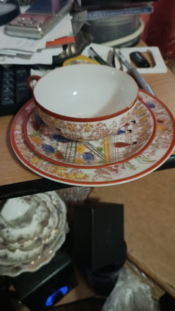 Frumos set japonez trio antik pe margine la farfurie mare semn
