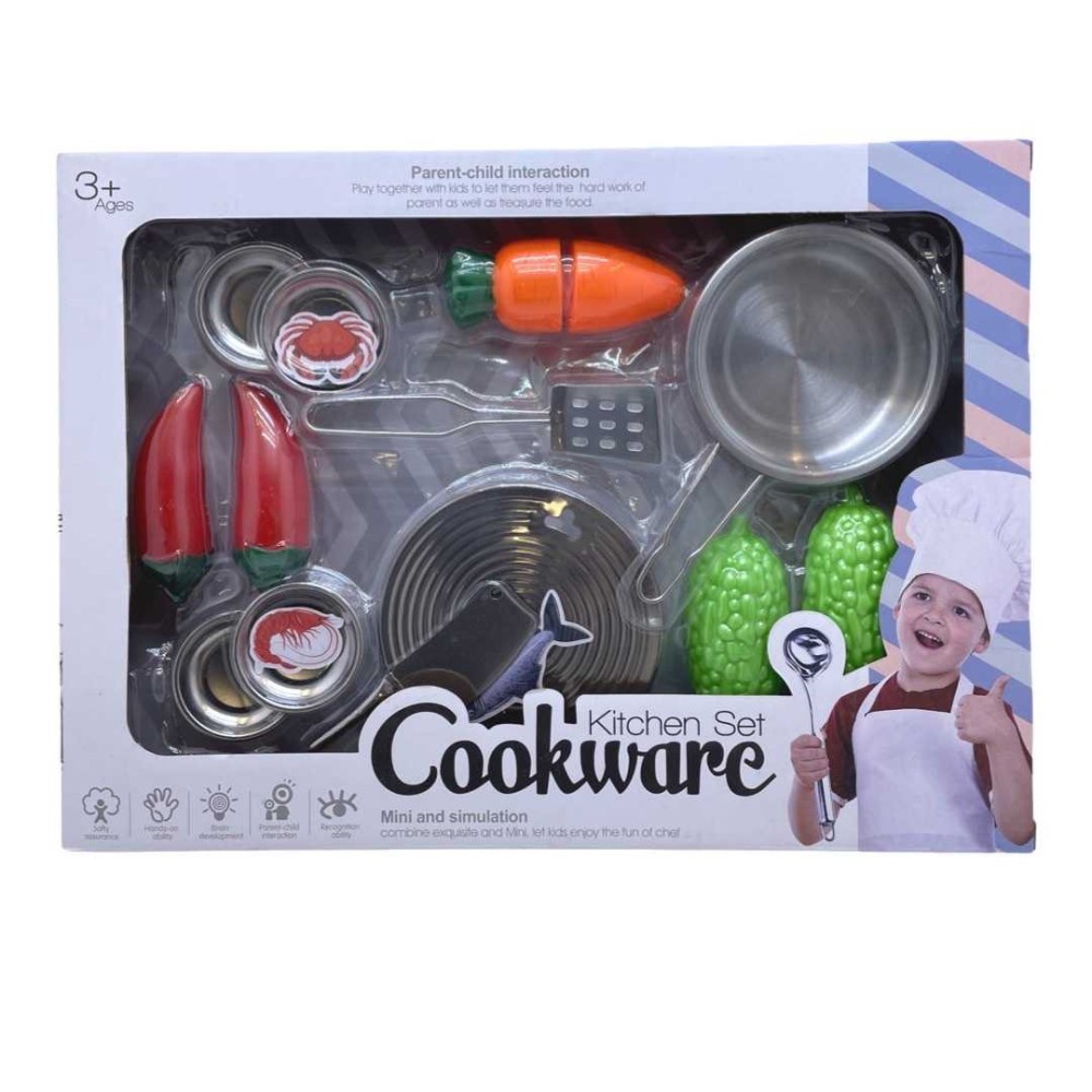 Set de vase metalice de jucarie plus accesorii legume. Ideal pentru bucatariw fiecarei fetite!