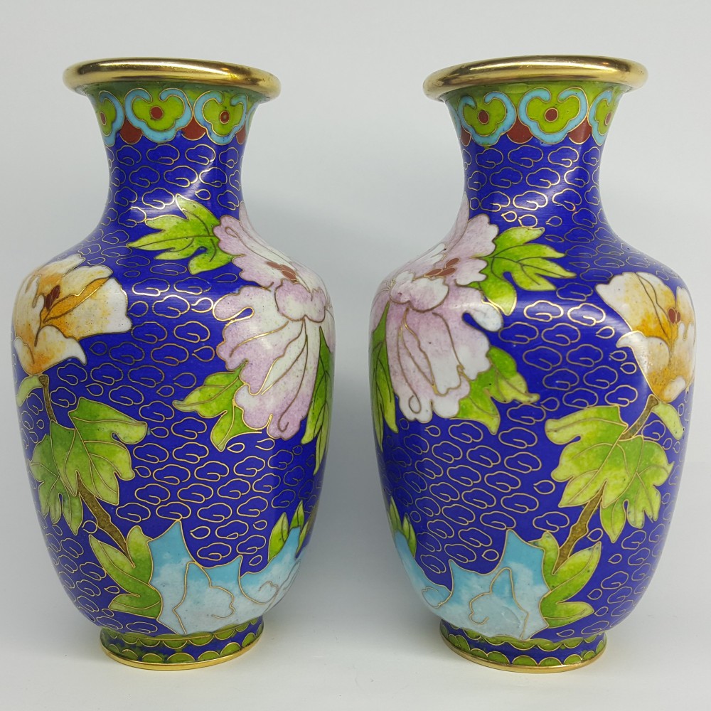Set vaze vintage bronz si email - CLOISONNE - 13 cm inaltime