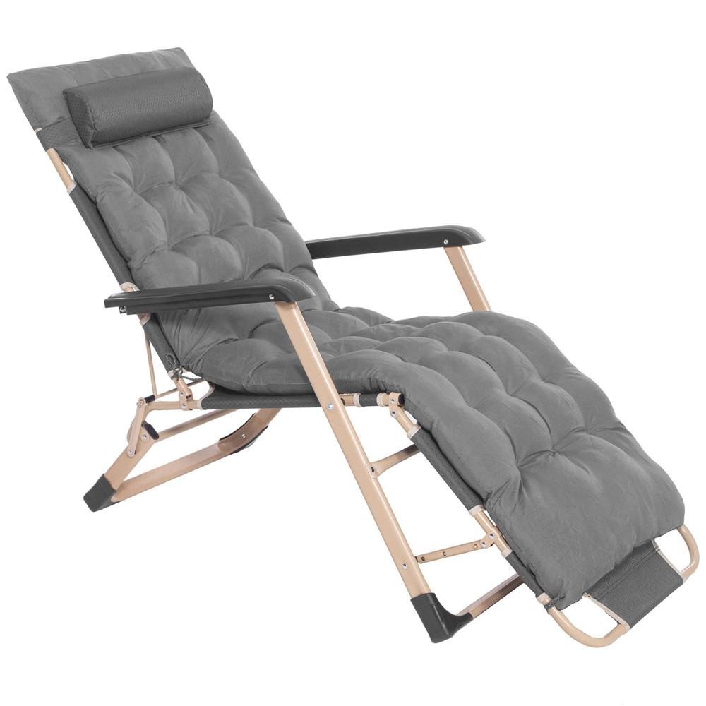 Sezlong pliabil cu perna si suport picioare reglabil, 176x66x92 cm, gri