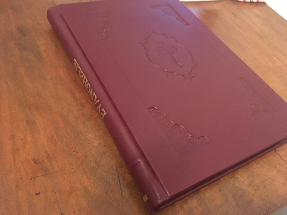 SFANTA SI DUMNEZEIASCA EVANGHELIE 1983 PF IUSTIN- REPRODUCE EDITIA 1964 COPERTI PIELE- FACSIMIL COLOR LUX! FORMAT MARE 29,5 X 21,5 CM.