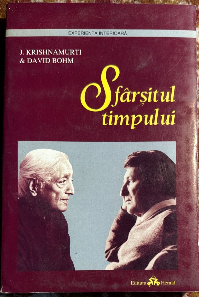 SFARSITUL TIMPULUI, J.KRISHNAMURTI in DIALOG cu fizicianul DAVID BOHM/ EDITURA HERALD 1985/ 284 pagini / STARE BUNA