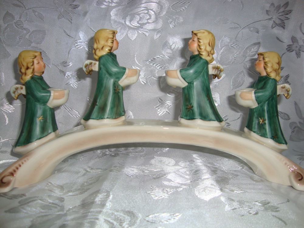 DRAGALAS SFESNIC CU 4 INGERASI DIN PORTELAN GOEBEL,SFESNICUL ARE INALTIMEA DE 12,5 CM SI DIMENSIUNILE DE 30 X 10 CM.