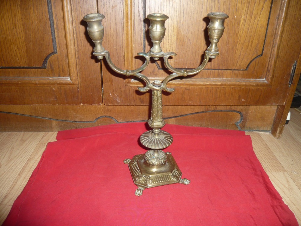 Sfesnic fier si bronz sec.XIX , cu 3 suporturi lumanari , h=30cm