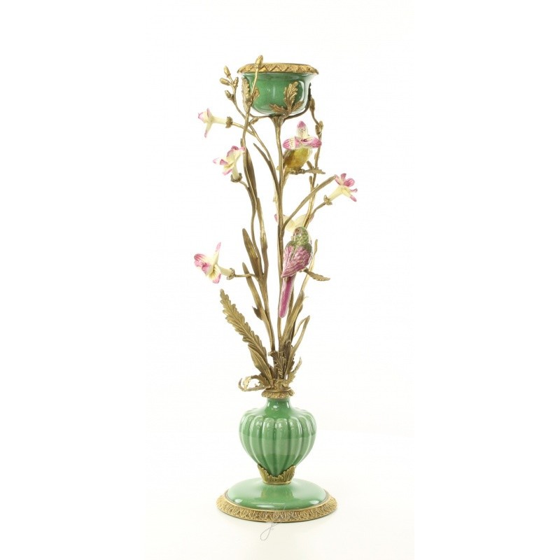 Sfesnic floare cu pasarica din portelan cu bronz BB-47