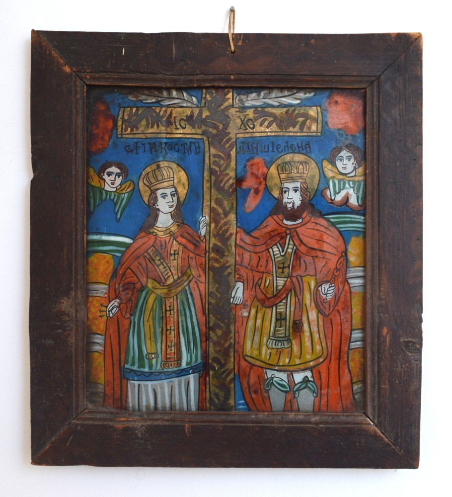 "Sfintii Imparati Constantin si Elena" icoana pe sticla de Scheii Brasovului sfarsit de sec XIX.