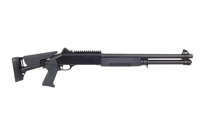 Replica airsoft shotgun este realizata dintr-o combinatie de materiale rezistente, metal si ABS, pe alocuri cauciucat, pentru a oferi o aderenta mai buna. Patul este ajustabil in lungime in functie de preferintele utilizatorului.<br />