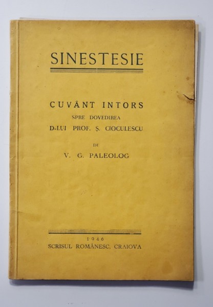 SINESTESIE - CUVANT INTORS SPRE DOVEDIREA D- LUI PROF. S. CIOCULESCU de V.G. PALEOLOG , 1946 , CONTINE DEDICATIA AUTORULUI *