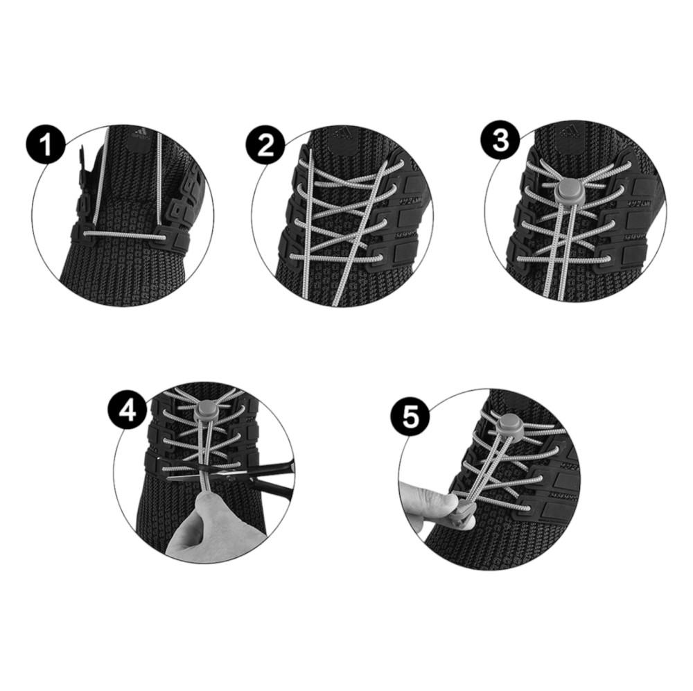Nu trebuie sa legati aceste sireturi elastice cu funda! Slabiti sau strangeti siguranta. Au o montare rapida si usoara. Tot ce trebuie sa faceti este sa le puneti pe pantof ca si alte sireturi, sa le trageti prin dispozitivul de siguranta si sa fixati capatul din plastic la capete.