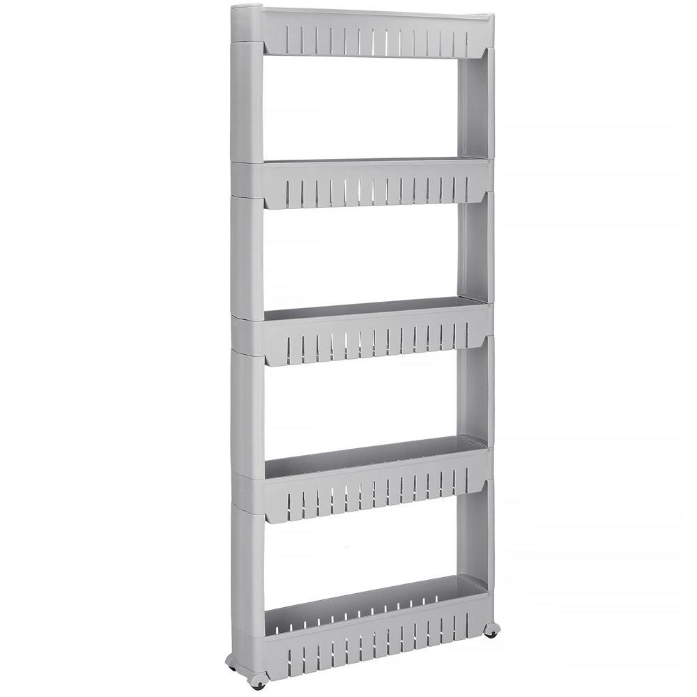 Sistem rafturi de depozitare cu roti pentru bucatarie sau baie cu 5 polite, 54x13x132cm, gri