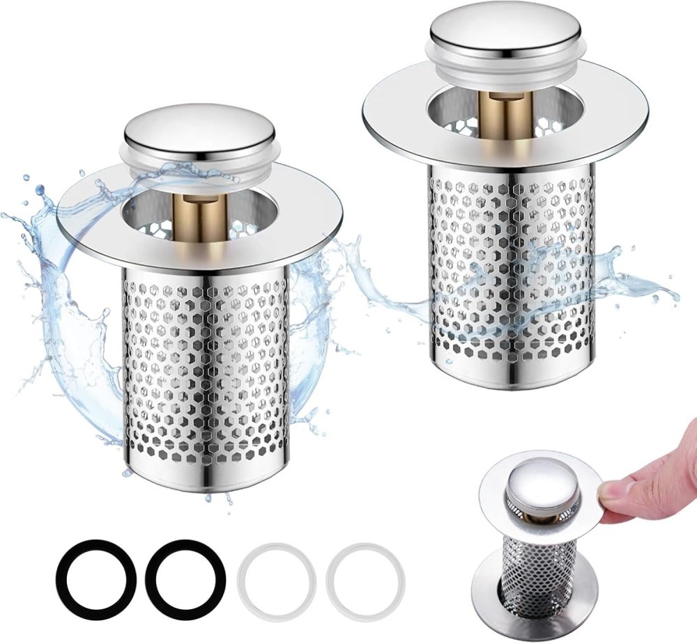 Sita de scurgere pentru chiuvete, filtru din otel inoxidabil, design pop-up, rezistent la coroziune, usor de curatat, argintiu, pentru chiuvete de 34-