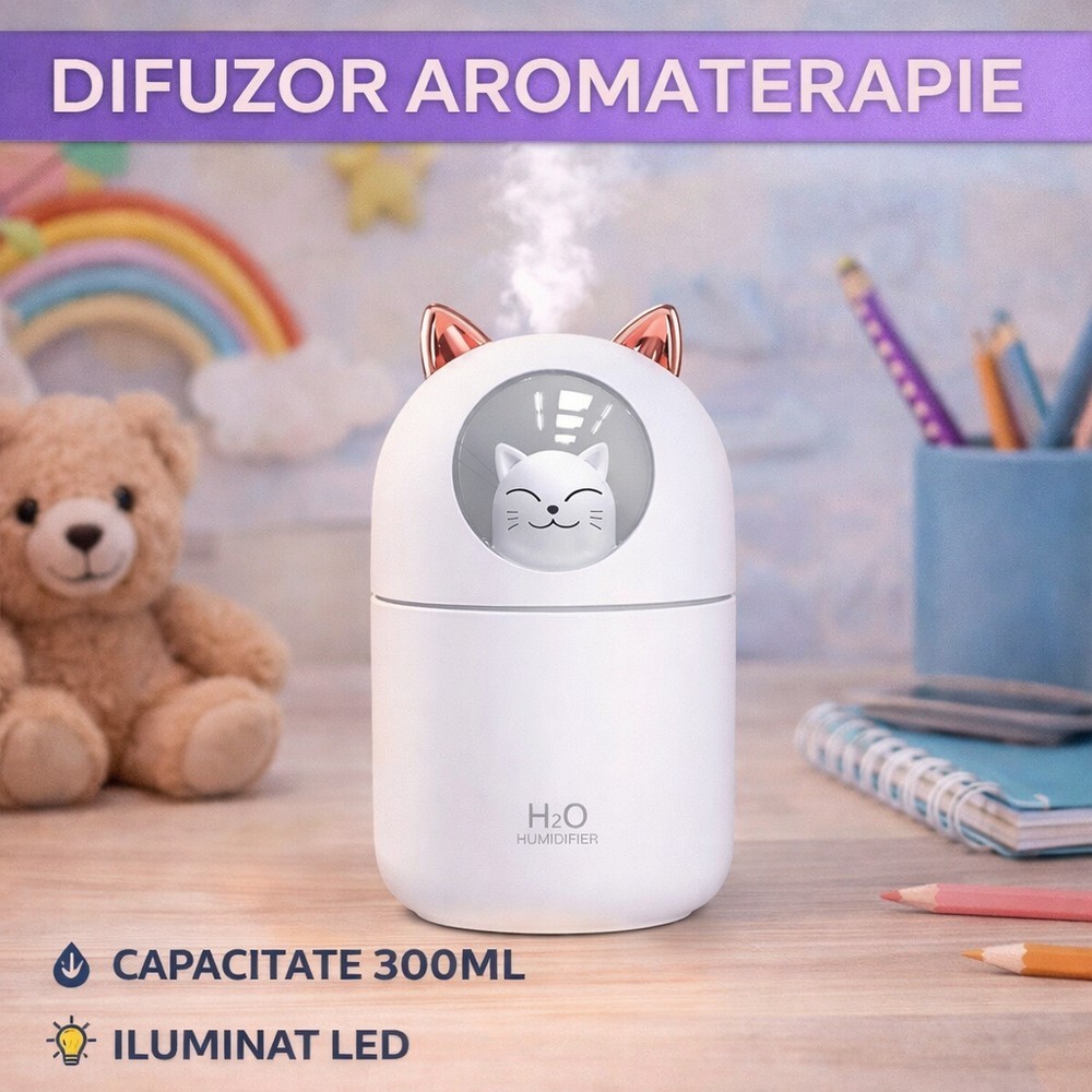 SMARTECH Umidificator de aer cu ultrasunete, difuzor aromaterapie 300ML, cu iluminat LED, pentru casa si birou STH-3