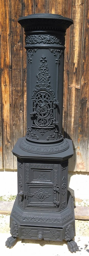 Vand soba veche din fonta, perioada 1850. Are înal?imea de 1,55 m. Este în stare impecabila, pastrata foarte bine. Tabla este groasa, nu are uzura deloc nici în zona focarului, practic nefolosita. Picioarele în forma de labe de leu sunt ca noi. Detalii în poze. Am cura?at-o si am vopsit-o pe negru asa cum a fost originala. Are un singur defect, la oala de sus are o fisura, dar nu-i afecteaza func?ionalitatea, am eviden?iat în poza. În rest perfecta. Este o piesa deosebita atât ca decor cat si folosinta, raritate cu adevarat. Pot sa livrez prin curier la cerere.
