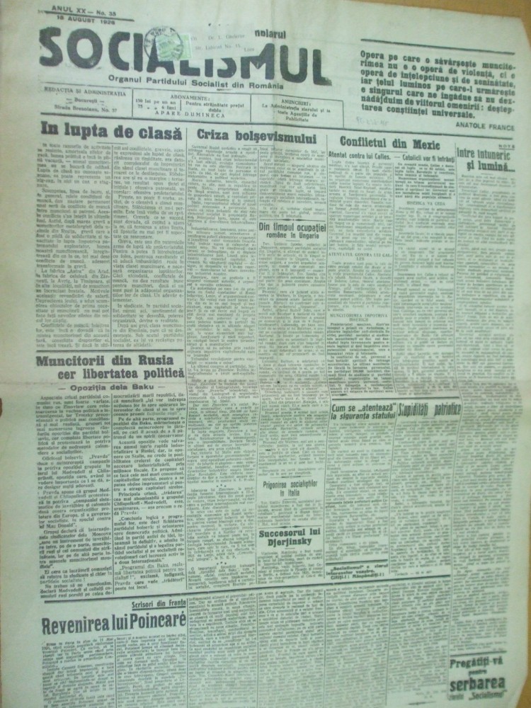 Socialismul 15 august 1926 Zarnesti Avrig Galati Vulcan Bazinul Nou greva