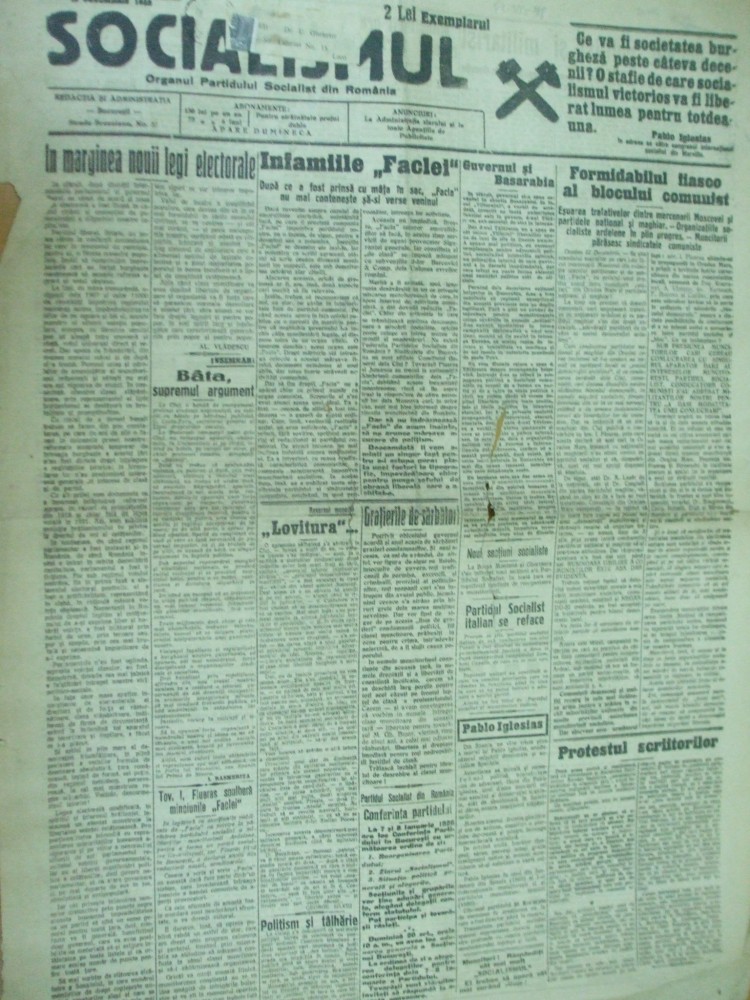 IN MARGINEA UNEI NOI LEGI ELECTORALE ARTICOL ANTILIBERAL IASI. BATA SUPREMUL ARGUMENT CLUJ STUDENTI AU BATUT PE COSTA – FORU SECRETAR LIGA DREPTURILOR OMULUI. I. FLUERAS SPULBERA MINCIUNILE FACLEI. GUVERNUL SI BASARABIA. FORMIDABILUL FIASCO AL BLOCULUI COMUNIST. PROTESTUL SCRIITORILOR ARTICOL BASARABIA. CUVANTARE I. PISTINER LA CAMERA DEPUTATILOR UN BUGET POLITIST SI MILITARIST. BRAD MUNCITORII GREVISTI REFUZA SPRIJINUL COMUNISTILOR. COZLA MUNCITORII MOR DE FOAME. SINUCIDERE DIRECTOR VAMI AL. BUNESCU. CERNAUTI CONCEDIERE FUNCTIONARI DE BANCA. JILAVA C. IVANUS CONDAMNATII POLITICI SUNT UCISI IN TEMNITE. COMEMORARE A LUI 13 DECEMBRIE SALA BREZOIANU.